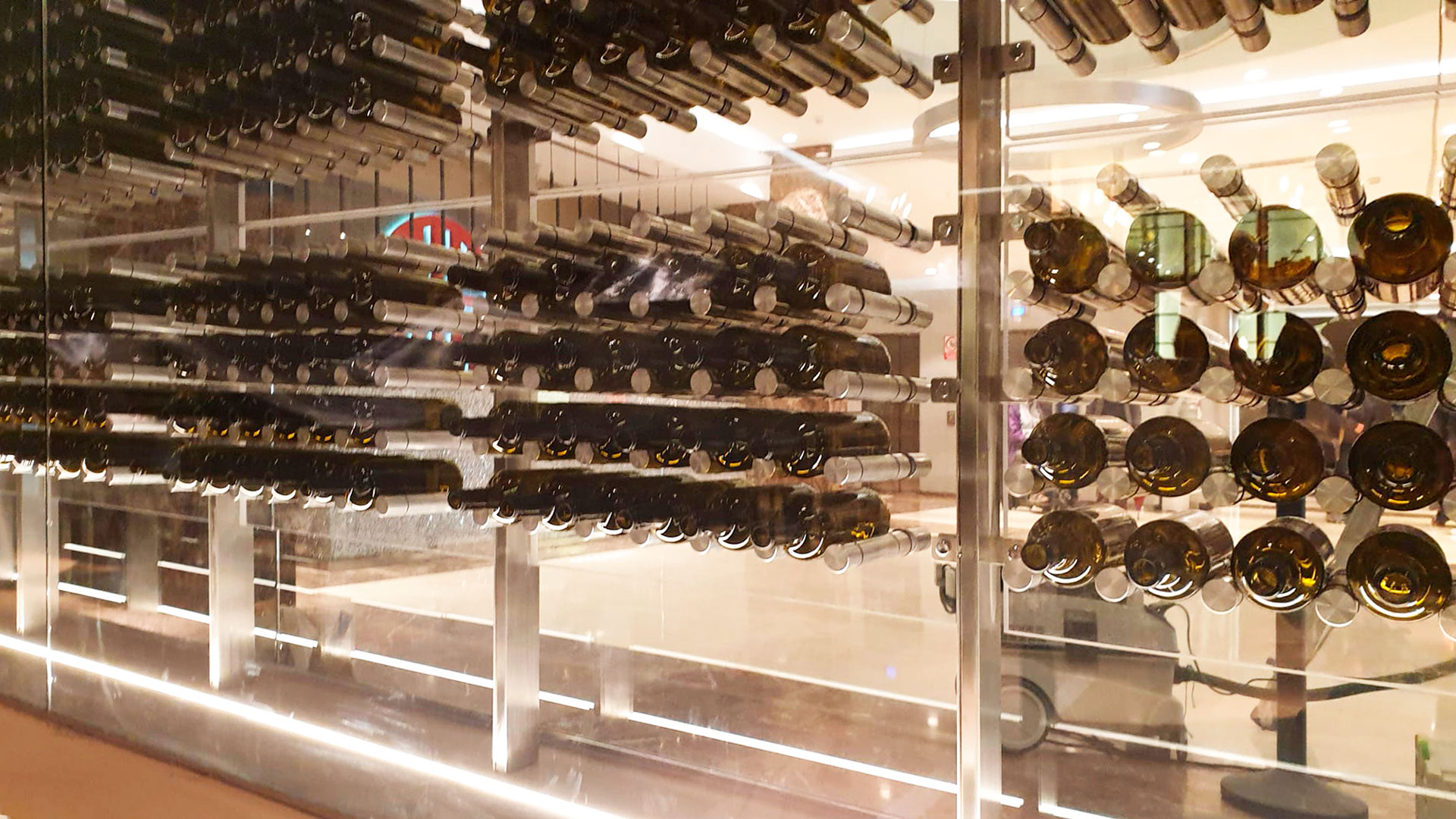 Barra de bar cocktelera, muebles de preparación, lavado y vinoteca con muebles fabricados a medida.