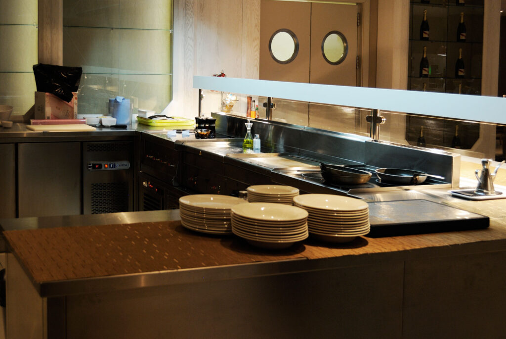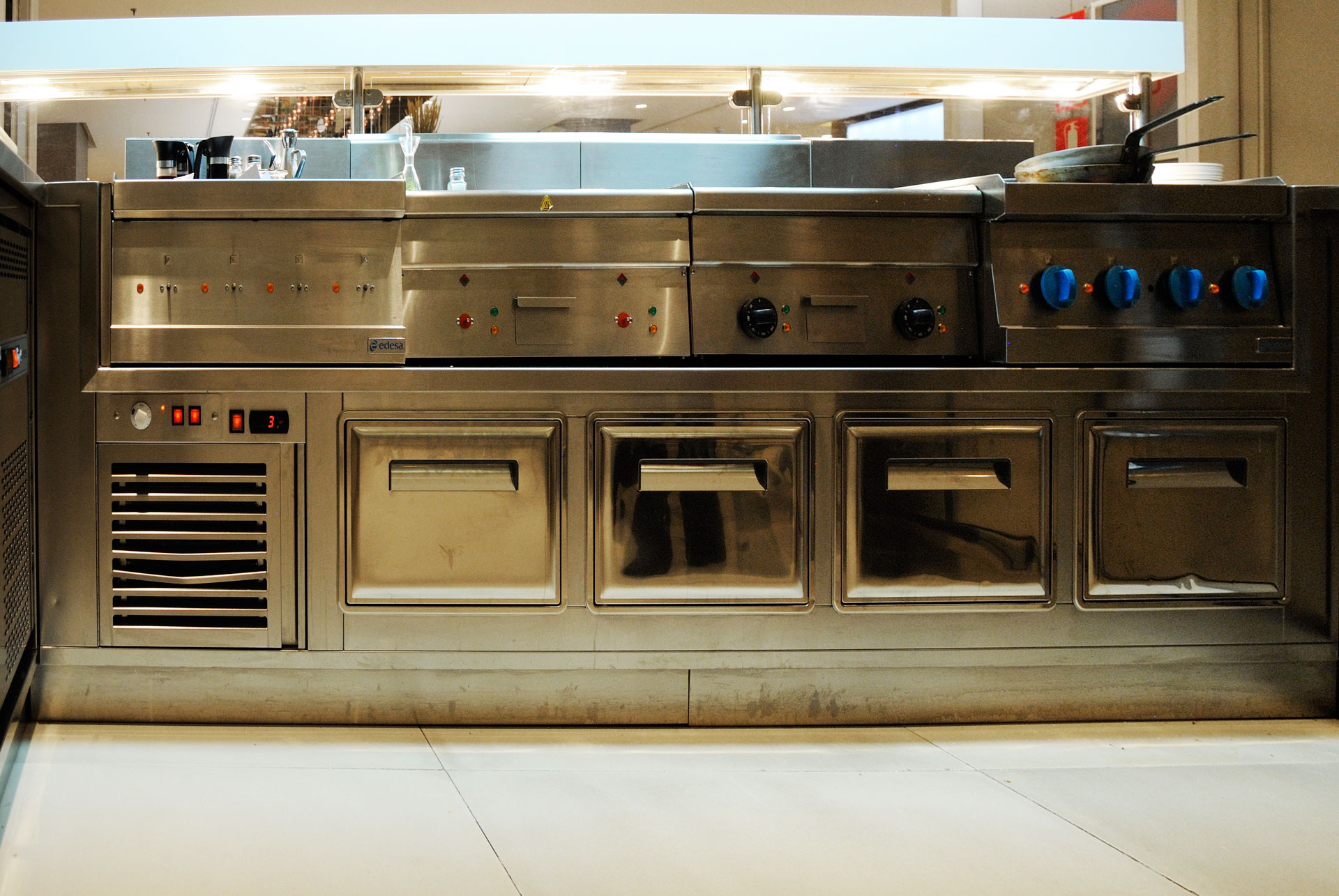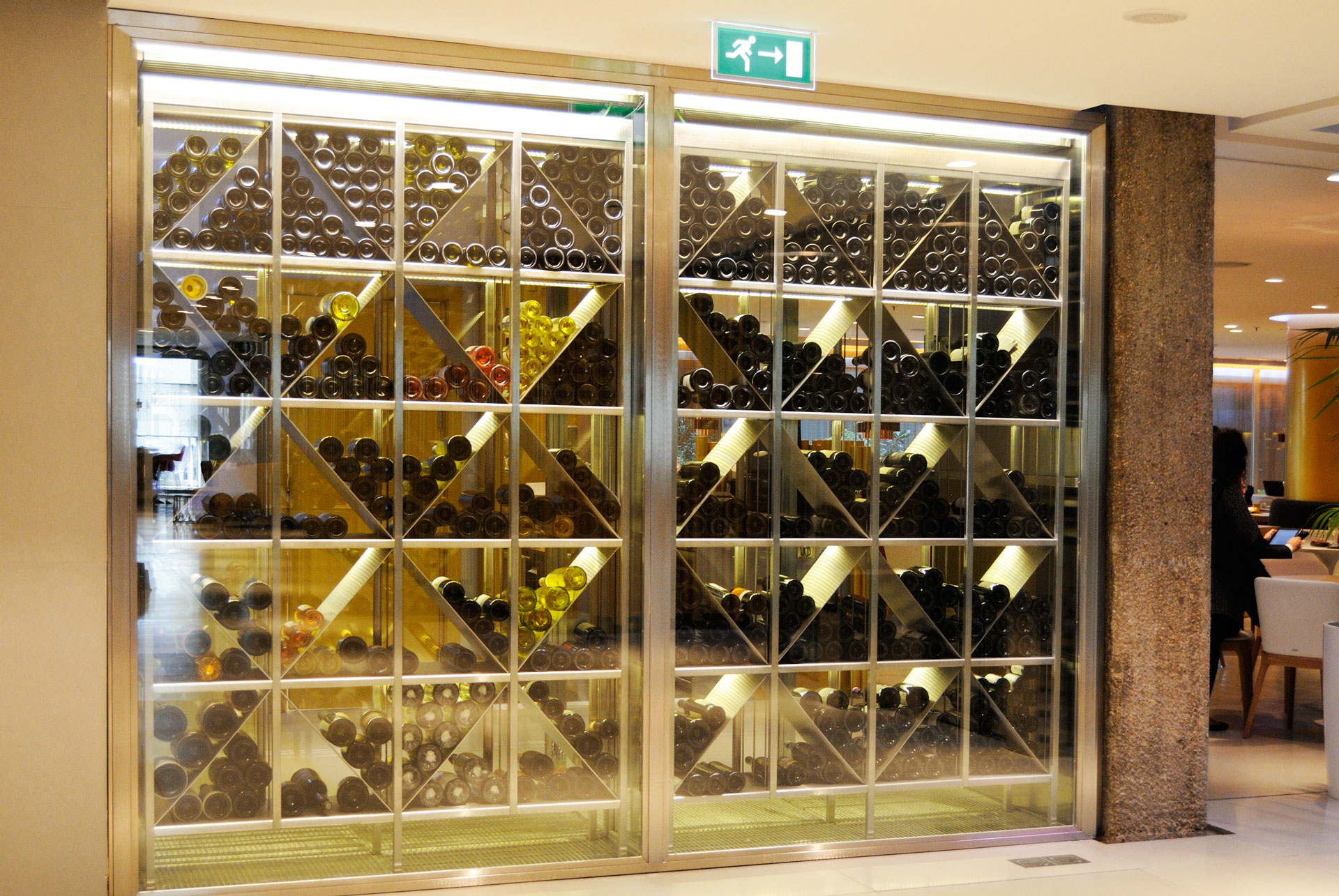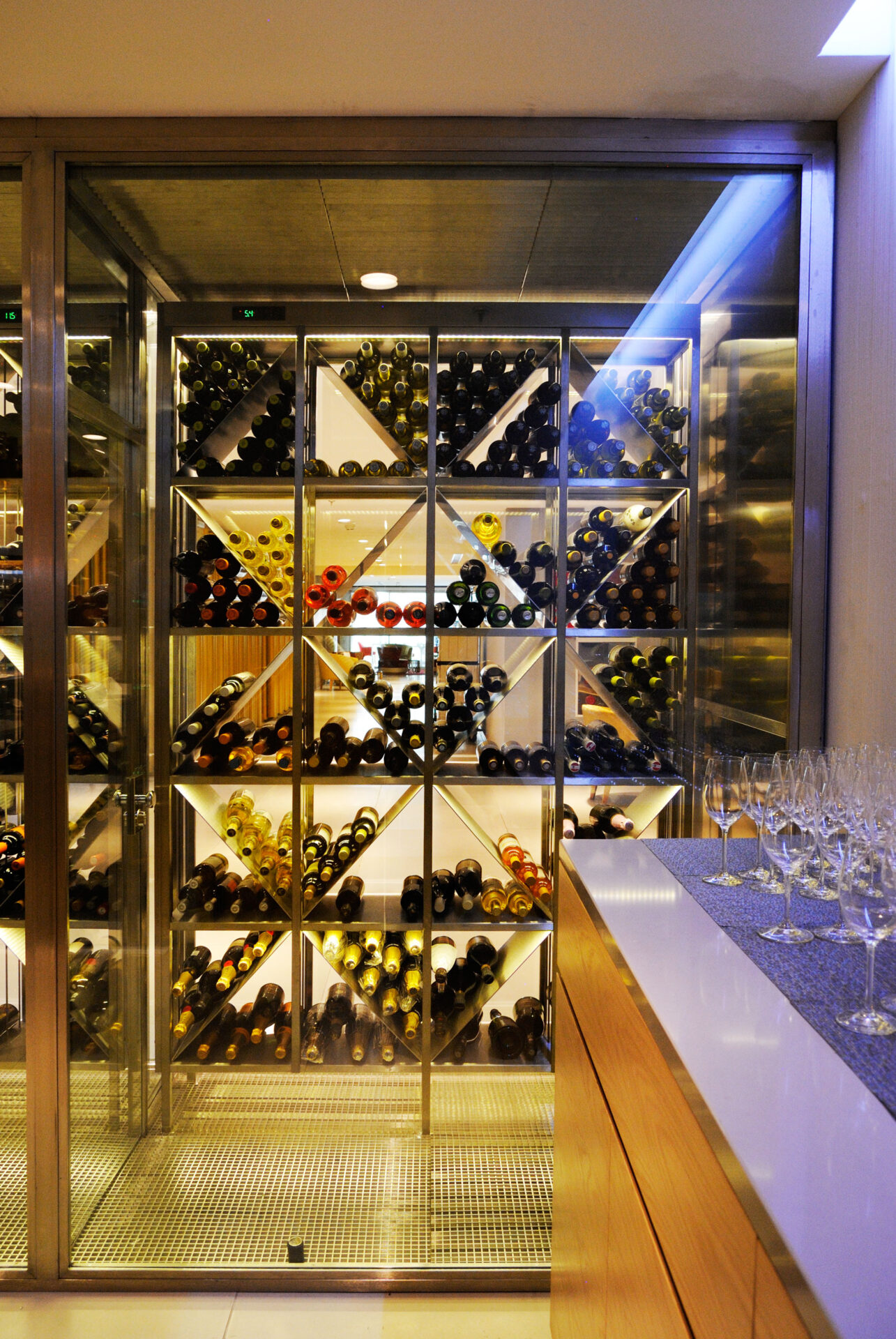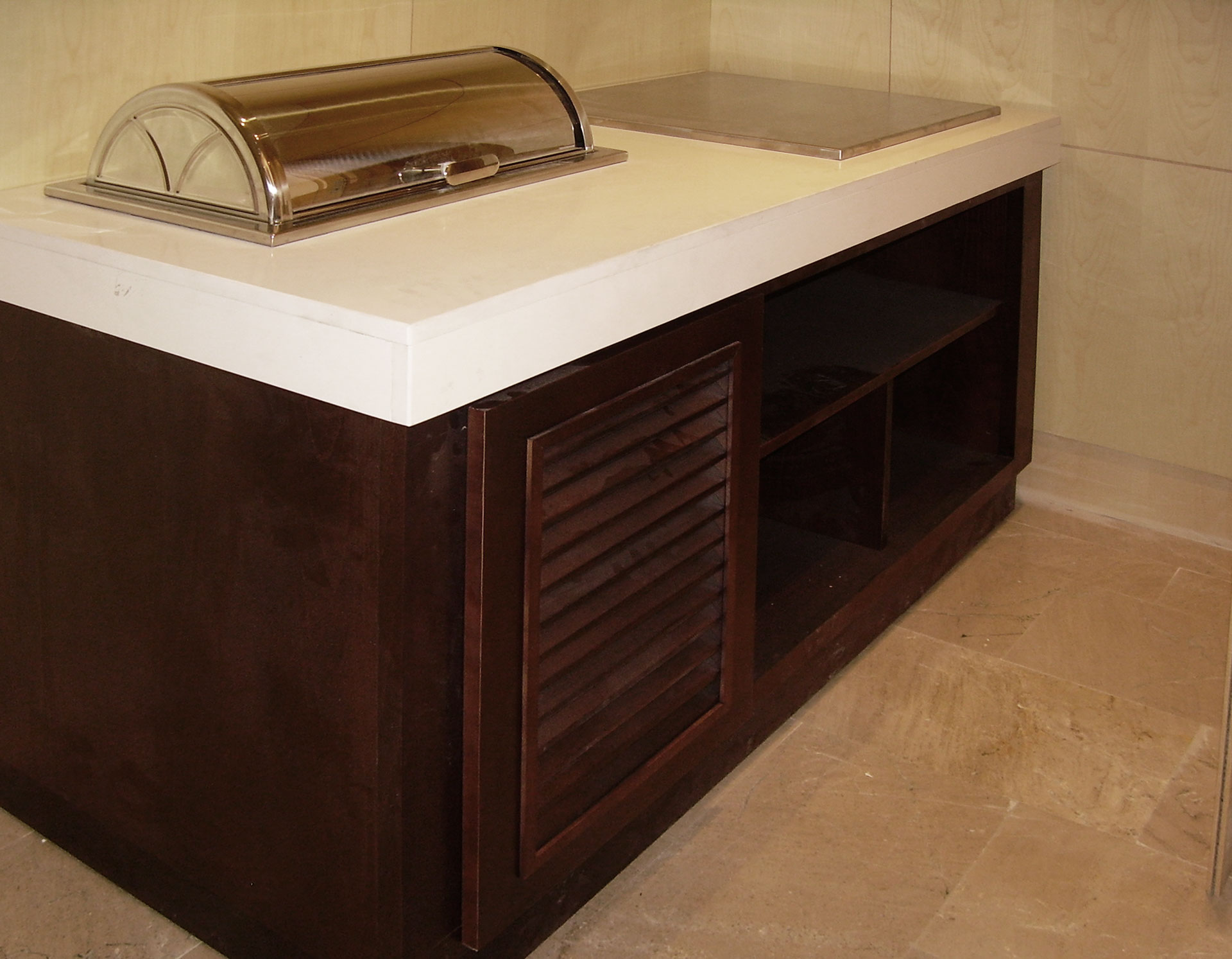 Mueble buffet con zona de cocción y vinoteca con muebles fabricados a medida.